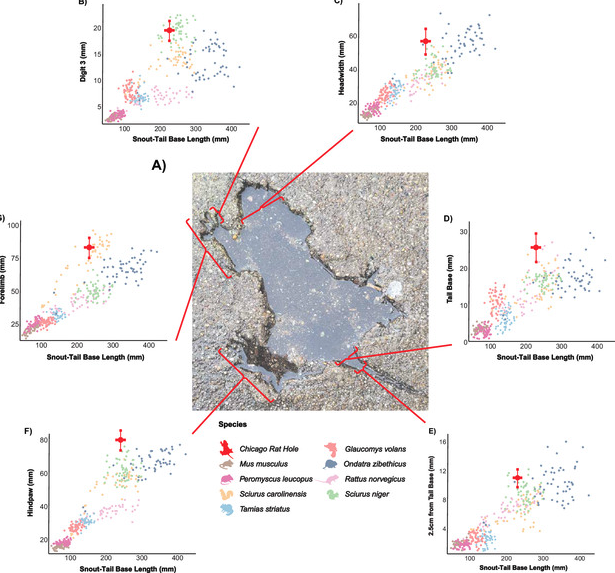 The study, aptly titled “Rodent indent not self-evident: a case of mistaken identity of the ‘Chicago Rat Hole’,” was published in Biology Letters and concludes that the hole was most likely caused by an “Eastern grey squirrel, fox squirrel or muskrat.”