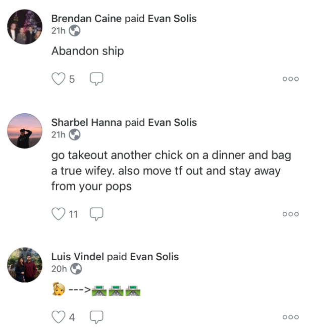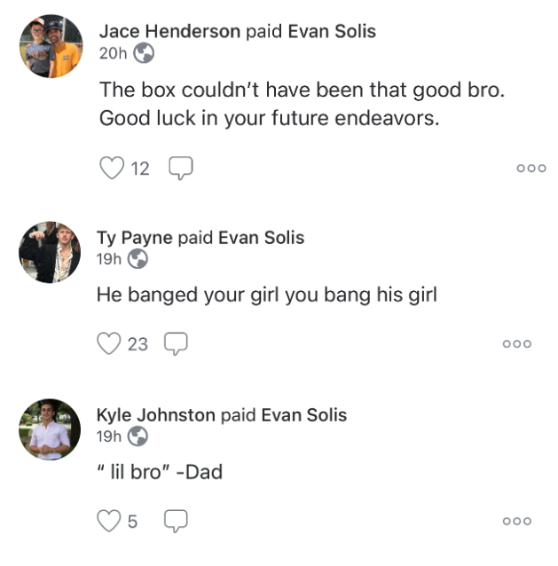 In the meantime, here’s a snapshot of some of the Venmo payments Solis has received for being the butt of a joke — although he’s certainly not the loser.