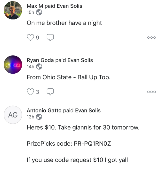 So, will Solis accept all of these payments with a thumbs up emoji? Or will he donate them to Cornett’s GoFundMe? I reached out to Solis for comment and will update this story with any response.
