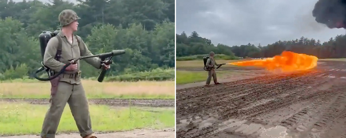 Man Fires Up His World War II Flamethrower