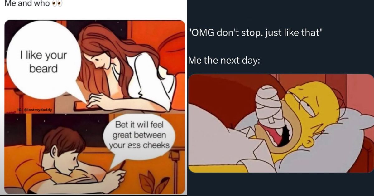 These NSFW memes are feral, filthy, and funnier than your last hookup's excuses. From lusty confessions to unhinged visuals, every slide is proof the internet has no boundaries. Clearly, neither do you.